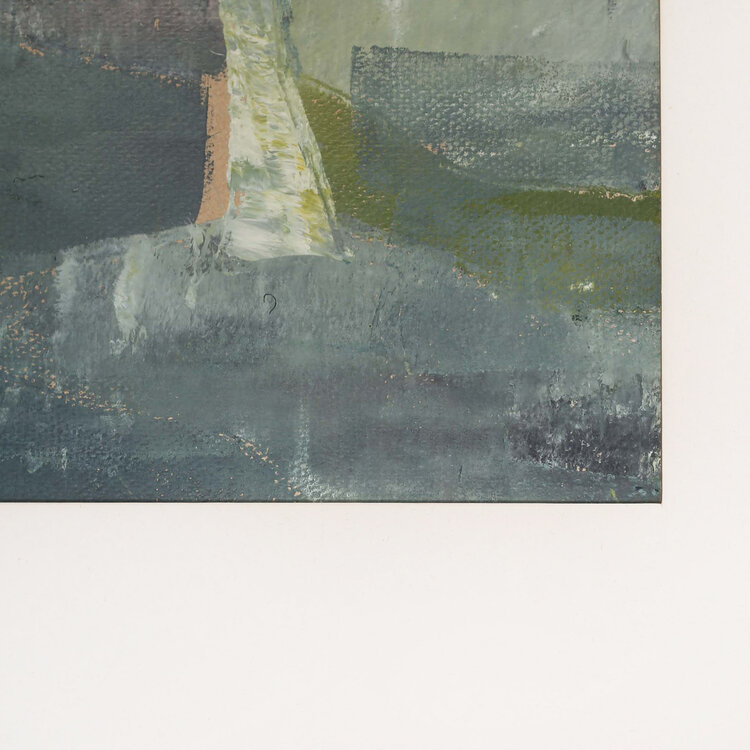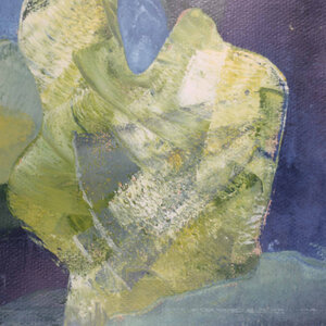 J.W. Bultje, Kafue (Zambia), jaartal onbekend. Mono print met geabstraheerd landschap met drie bomen en vrouwenfiguur. Conditie: Lijst toont sporen van gebruik. Afmetingen beeldvlak: 60 x 47 cm; incl. lijst: 71 x 81 cm.