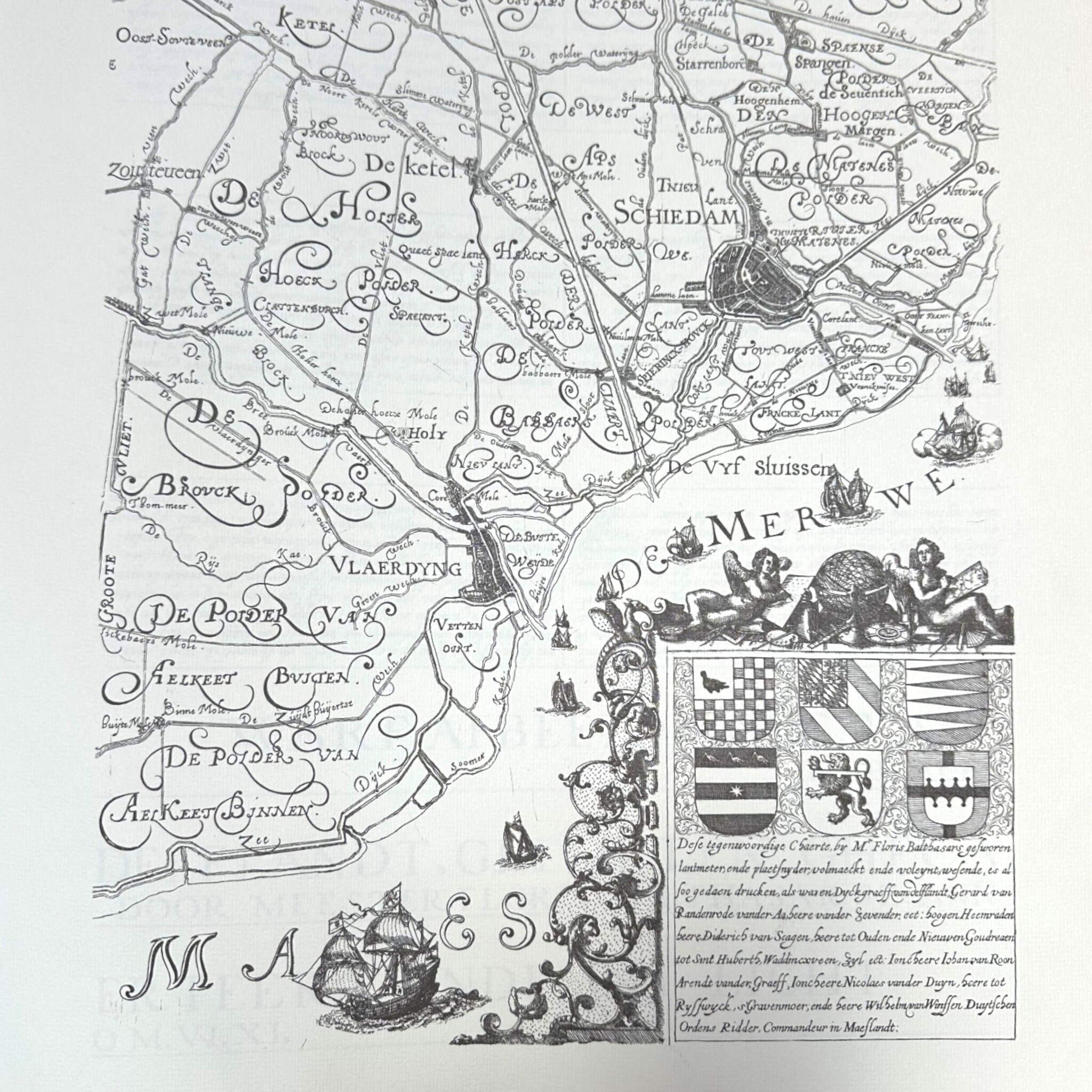 Kaartboek van Rijnland, Delfland en Schieland, Floris Balthasars; uitgave 1972. Deze atlas factice, ook wel samengesteld kaartboek genoemd, bevat drie kaarten van de hoogheemraadschappen Rijnland, Delfland en Schieland.