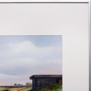 Kees Nevenzel (Amsterdam, 1951), 'Spaarndammerdijk & Ringweg'. Gemengde technieken met verschillende soorten verf in metalen lijst met passe-partout. Afbeelding van een weiland met karrenspoor en sloot. In de verte staan elektriciteitsmasten. Achterop staat geschreven: "Spaarndammerdijk & Ringweg met electriciteitsmasten. Novemver 1981. (Helft van een serie van 2)". Signatuur rechtsonder. Datering: 1982. Conditie: gebruikssporen lijst, zoals resten van stickers. Afmetingen lijst: 50,5 x 65,5 cm; beeldvlak: 30 x 48 cm.