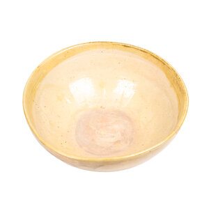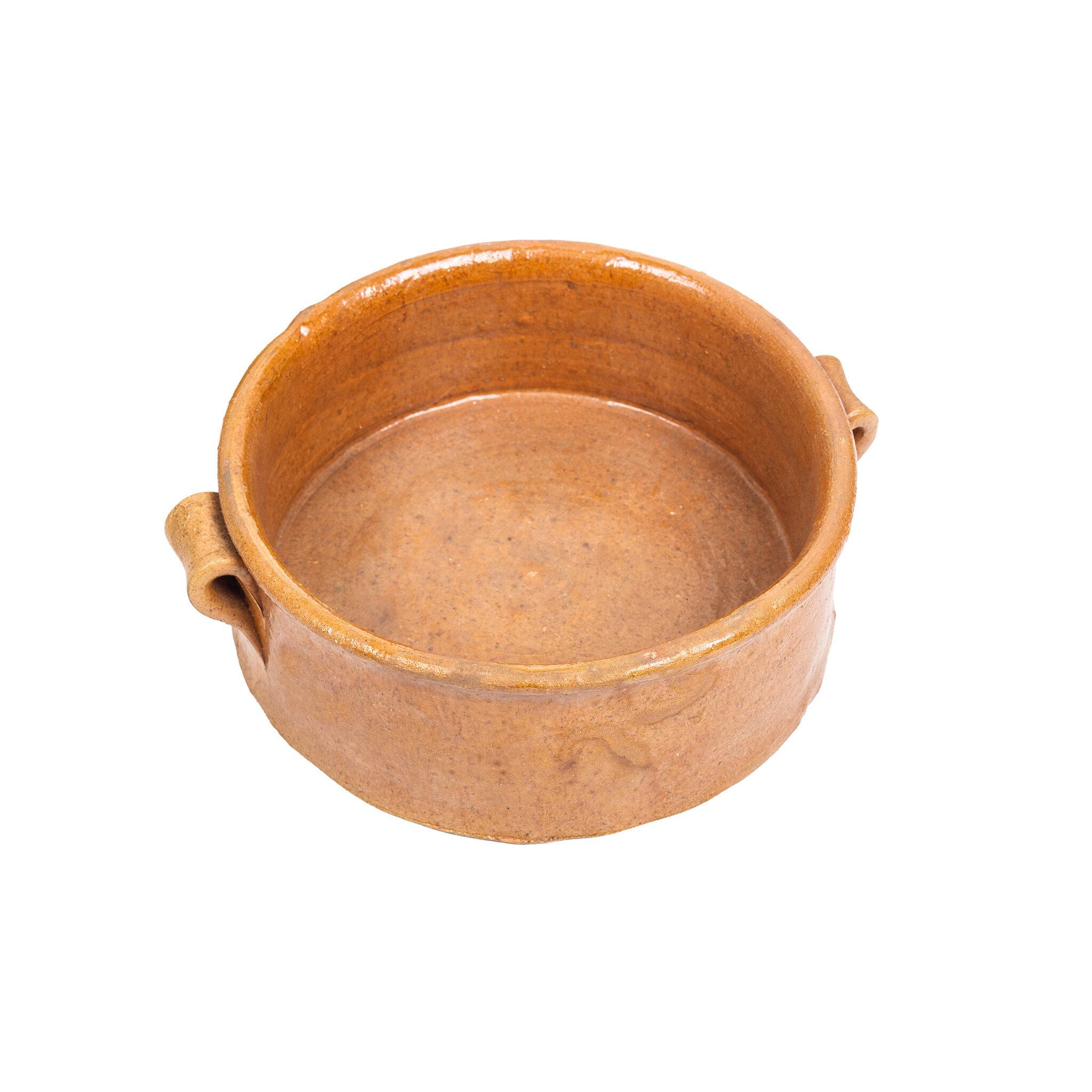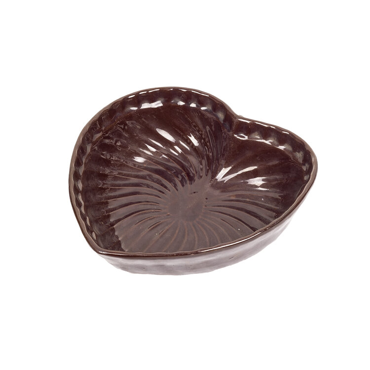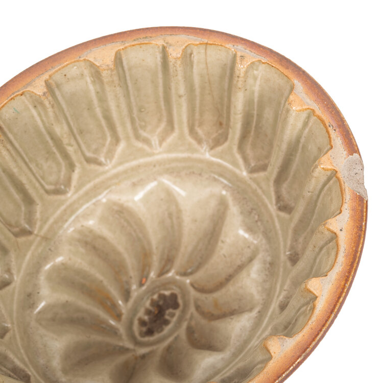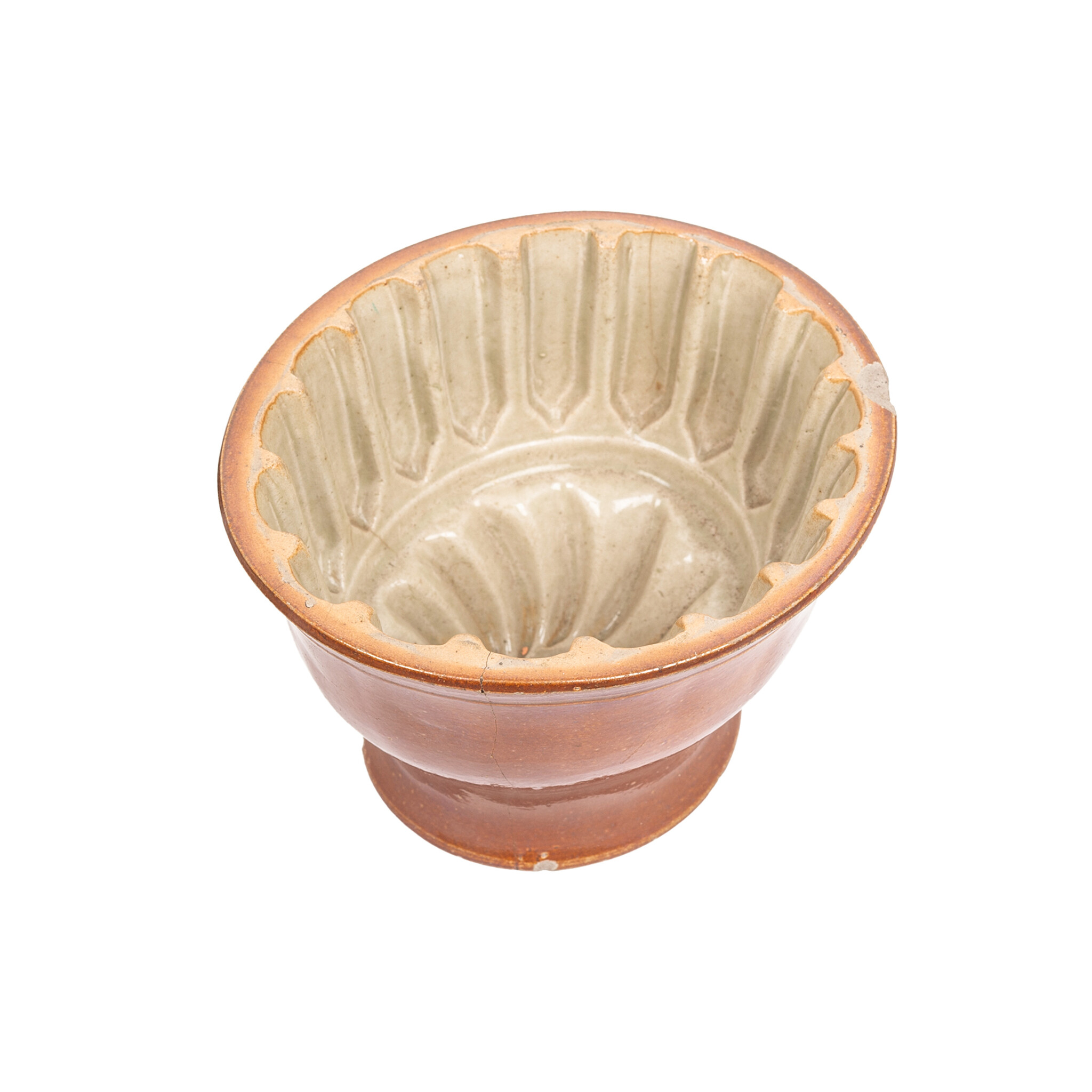 Set bestaande uit: een geel/groen geglazuurde kom; een lage roodbruin geglazuurde platte pan of schaal met twee dubbelgevouwen oren; twee puddingvormen: een ovale aan de buitenkant bruin en de binnenkant grijs geglazuurd en een donkerbruin geglazuurde hart-vormige. Datering: 20ste eeuw. Conditie: ovale puddingvorm heeft scherven uit rand en standring onderop beschadigd, rest in goede conditie. Afmetingen: 9,3 x ø 23,6 cm; 7,2 x 21,3 x ø 18,3 cm; 11,4 x 18,5 x 16 cm en 72 x 22 cm.