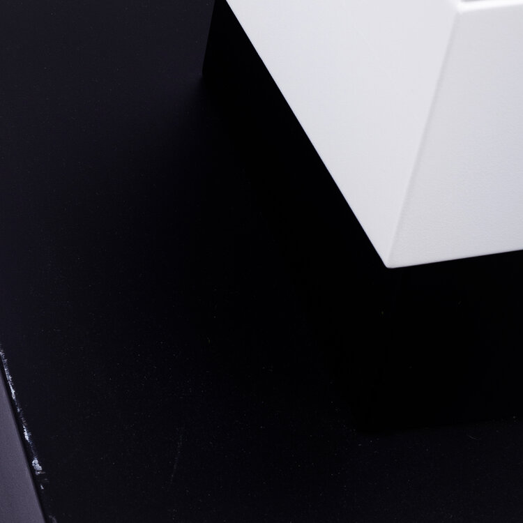 Lamp speciaal ontworpen door Richard Hutten voor het Nederlands Fotomuseum in Rotterdam, voor de manifestatie 'Black and White'. De lamp bestaat uit blokken in wit, zwart en grijs en is gemaakt van stevig plaatstaal. In 2012 hield het Nederlands Fotomuseum een tentoonstelling en manifestatie van drie jaar rond het thema zwart/wit. De designer kreeg de opdracht van het museum in te spelen op het thema. Hutten ontwierp voor de gelegenheid het interieur van de entree, de winkel en het café van het museum. Conditie: vertonen lichte gebruikssporen, zoals hier en daar krasjes. Afmetingen: ca. 77 x 45 x 45 cm.