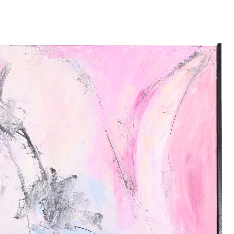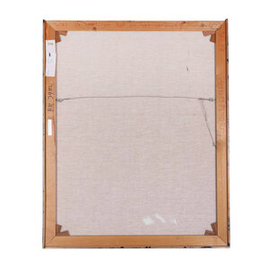 M. Bauer, Wat ik verloren heb en heb verlangd II, 1988. Acryl op doek in zwart houten omlijsting. Kleurrijke voorstelling in roze, geel en blauw met grove penseelstreken en in zwart details van een lichamen. Rechtsonder signatuur en jaartal. Conditie: gebruikssporen aan lijst en bovenste lat mist. Afmeting werk zonder lijst: 103 x 82 cm.