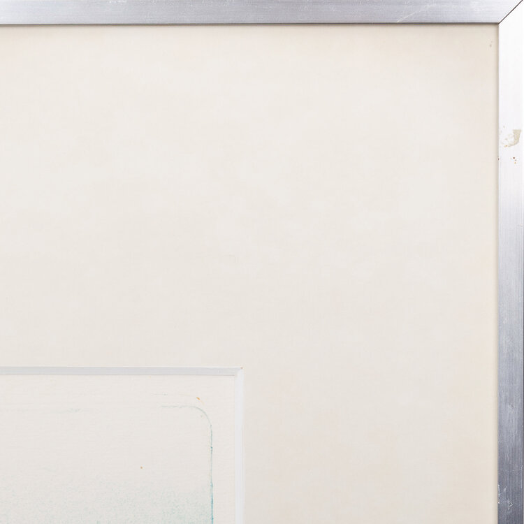 Michel van Overbeeke, 'Tuinvaas 2', 1974. Ets in zilverkleurige lijst, oplage 16/25. Kleurrijke compositie met een mummie op het dak van een huis, waar zwarte en rode gevleugde figuren naartoe vliegen en witte figuren uit vliegen. Signatuur rechtsonder. Conditie: hier en daar foxing vlekjes op het werk en de lijst toont gebruikssporen, aan de achterzijde een paar deuken. Afmeting lijst: 81 x 70,5 cm, beeldvlak: 49 x 49 cm.