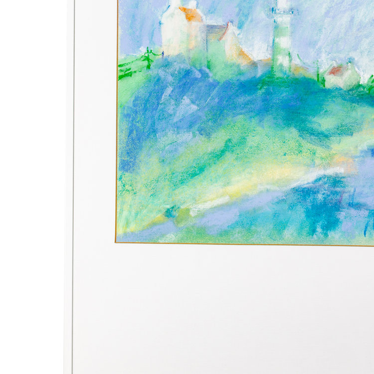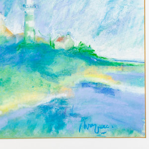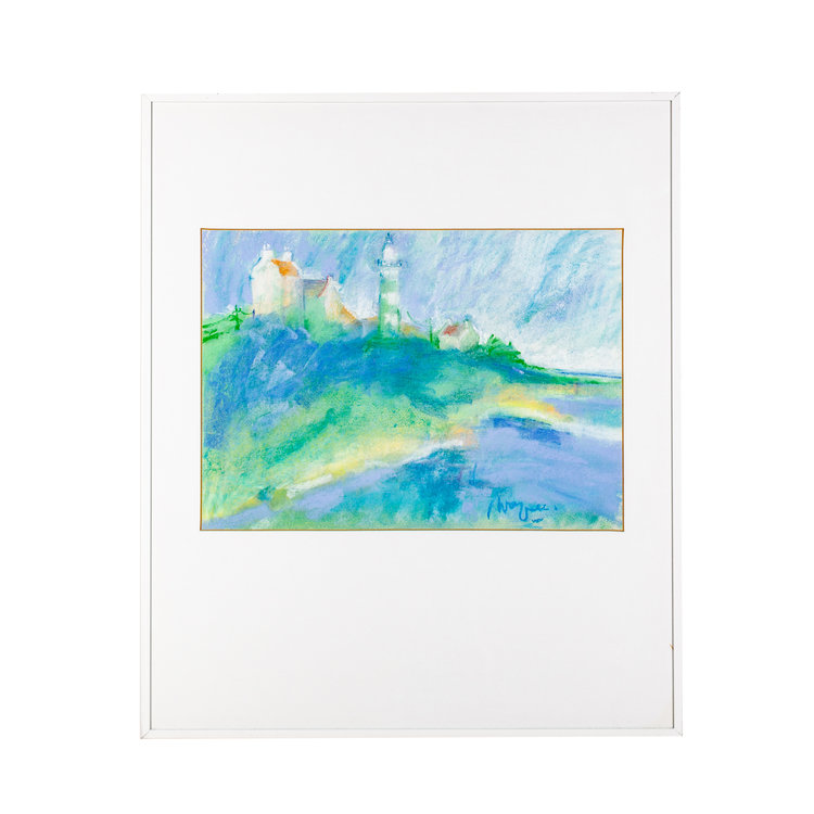 M.J. Wagner, Doelan, jaartal onbekend. Pastel op papier in witte lijst. Kleurrijke voorstelling van een landschap aan zee met gebouwen en vuurtoren. Signatuur rechtsonder. Conditie: goed, gebruikssporen aan lijst. Afmeting werk zonder lijst: 61 x 51 cm.