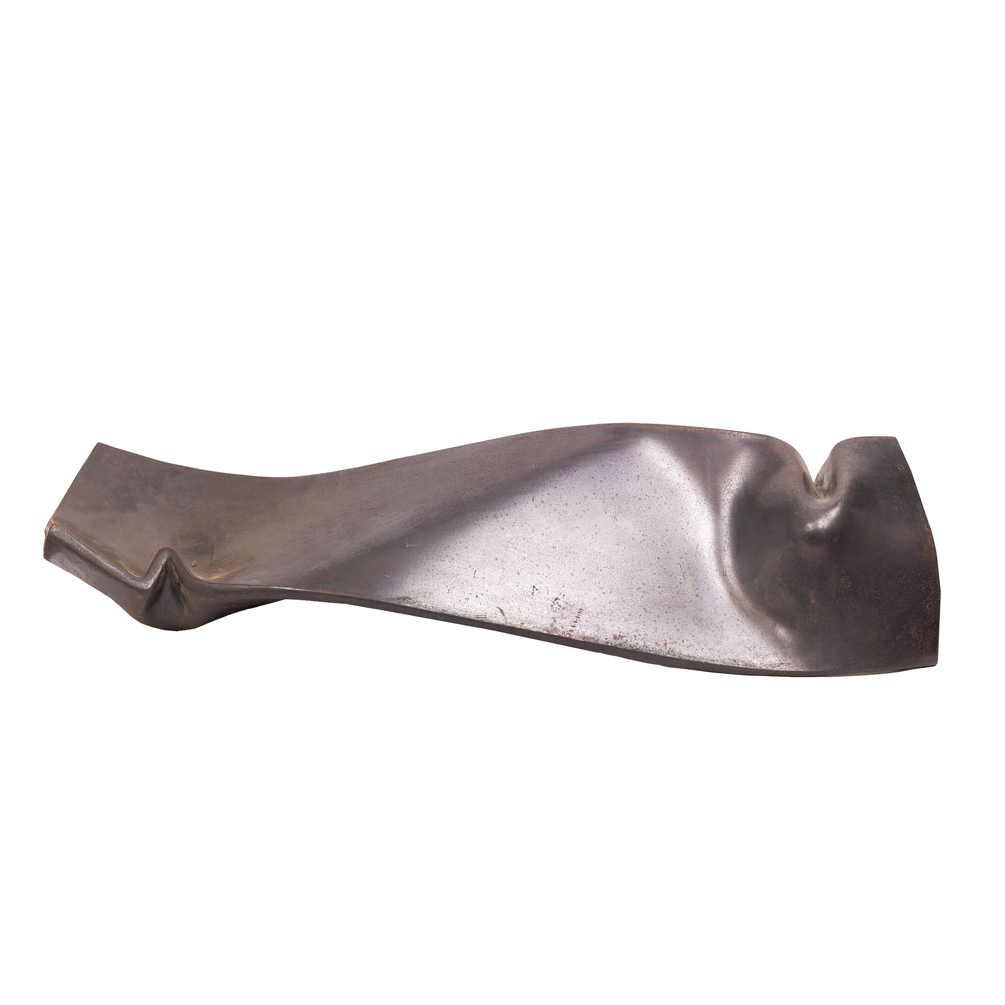 Nico Betjes, Zonder titel, datering onbekend. Liggend sculptuur van metaalplaat. Abstracte compositie van golvende vormen. Conditie: sporen van gebruik en ouderdom zoals krasjes en patina. Afmetingen: ca. 60 x 110 x 30 cm.