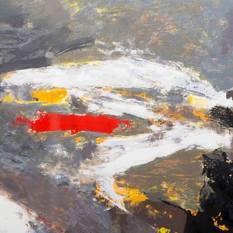 Nico Molenkamp, Vogel, jaartal onbekend. Zeefdruk zonder lijst, oplage van 200. Voorstelling van een vogel met geopende vleugels in zwart, met rode, witte en gele accenten. Linksonder signatuur en oplagenummer. Conditie: goed, lichte gebruikssporen aan lijst. Afmeting: 87 x 80 cm.