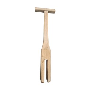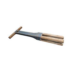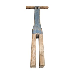 Vierkante wasstamper van hout, uitlopend in 4 poten. Geprofileerd bovendeel met dwars geplaatste handgreepstaal. Wasknijper van beukenhout, tweebenig, met een veer van metaal als scharnier in de rug. Een stukje staaldraad als begrenzer. Wasspaan, spaan van blank hout om de was mee te roeren. Wastangen. Gebruikt om de was uit het hete sop te halen. Datering: 1900-1949. Conditie: goed. Afmetingen wasstampers: ca. 60 x 9,5 x 9,5 cm. Afmetingen wasknijper: ca. 54,0 cm. Afmetingen wasspaan: ca. 66,0 x 5,2 x 1,5 cm. Afmetingen wastangen: lengte varieërend tussen 51 en 87 cm.