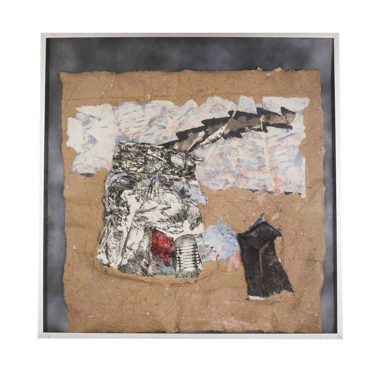 P. Gentenaar, Gevaren der zee. Drie dimensionaal werk in gemengde techniek met zee thema achter glas. Afmetingen: 82 x 81 cm. Conditie: Lijst toont sporen van gebruik.