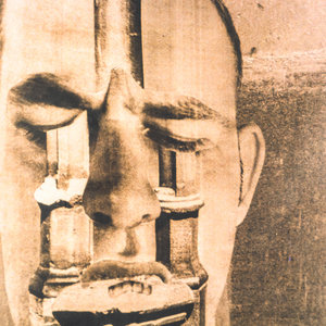 Paul Overdijk, Sylwyn, ca. 2003. Foto in zwarte lijst. Portret van een man bewerkt met pilaren in het gezicht. Conditie: goed, gebruikssporen aan lijst. Afmeting foto: 75 x 48 cm, incl. lijst 91 x 61,5 cm.