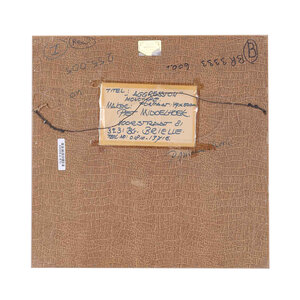 Piet Middelhoek, Agression, jaartal onbekend. Monotype in wit houten lijst. Abstracte voorstelling van kleurrijke vlakken. Conditie: gebruikssporen aan lijst. Afmeting werk zonder lijst: 29 x 20 cm.
