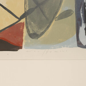Piet Warffemius, Vrije orde, 1995. Zeefdruk op papier in metalen lijst, oplage 56/60. Drie abstracte voorstellingen naast elkaar in rood, geel, blauw en zwart. Linksonder titel, in midden handtekening, rechts jaar en oplagenummer. Conditie: gebruikssporen aan de lijst. Afmeting lijst: 60 x 80 cm.