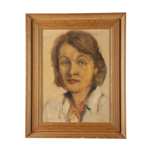 Theo Swagemakers, Portret Heidi Grün, 1981. Olieverf op doek op paneel of karton, werk 40 x 30 cm, lijst 51.5 x 41.6 cm. Fraai portret geschilderd met grove toets in neutrale kleuren, gesigneerd linksonder. Het werk is ingelijst in een moderne strakke houten lijst. Theo Swagemakers (1898-1994) is een bekende Nederlandse schilder van voornamelijk portretten en stillevens. Hij genoot zijn opleiding in Brussel en Parijs en heeft verschillende beroemdheden mogen portretteren, zoals een groot deel van de Koninklijke familie. Hiervoor heeft hij de Thérèse van Duyl-Schwartzeprijs in ontvangst mogen nemen in 1958. Conditie: het werk is in prima conditie. Het vernis is wat vergeeld. De lijst heeft lichte gebruikssporen, met name op de hoeken en aan de onderzijde.
