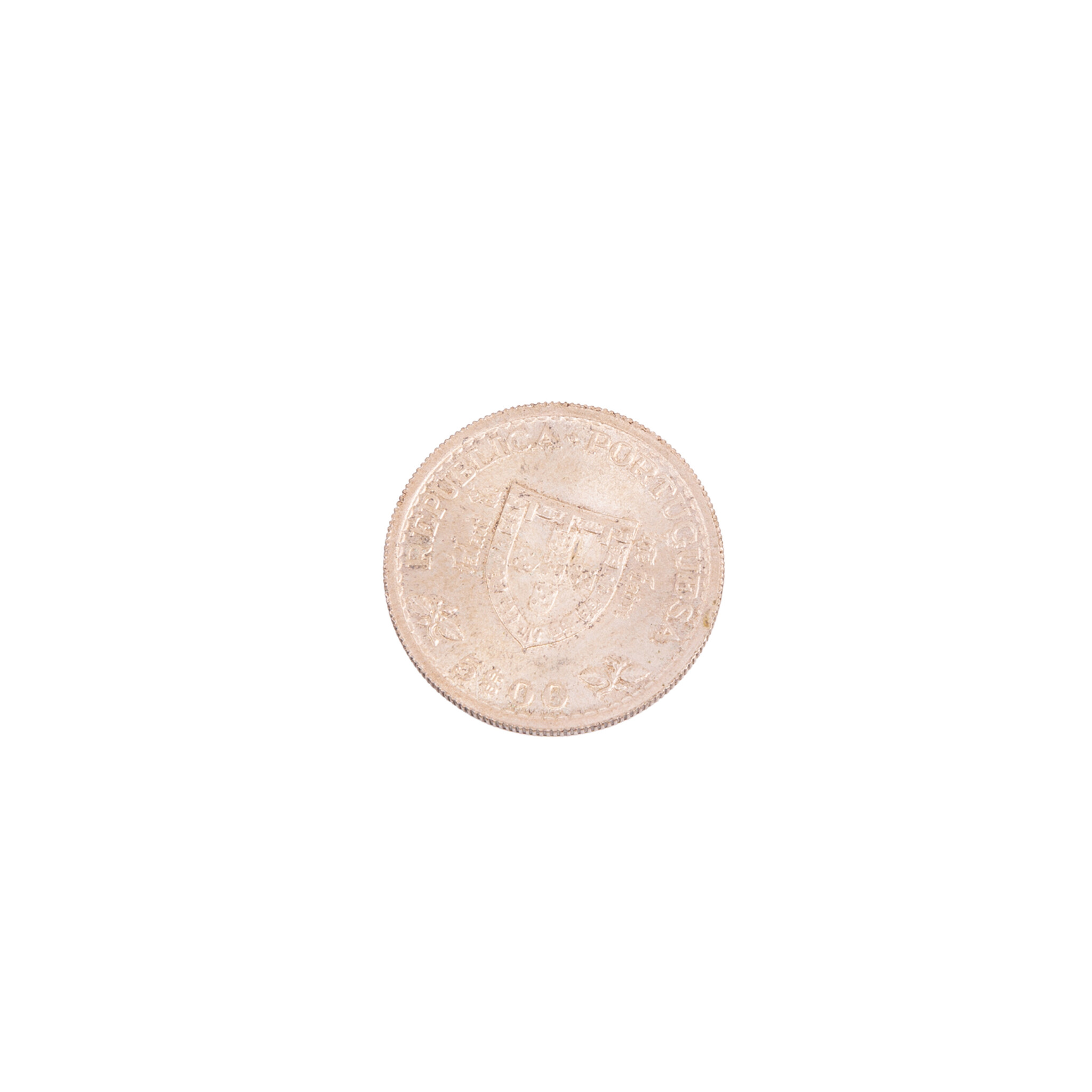 Portugees muntstuk van 5 escudo op de 500ste sterfdag van Hendrik de Zeevaarder, 1960. Op de voorzijde een portret van Hendrik de Zeevaarder (1394-1460), infant van Portugal, binnen een omschrift. Onder het portret de datering "1960". Op de keerzijde het Groot Keten van de Orde van de Infant Dom Henrique, de Portugese ridderorde die in 1960 is ingesteld. Met omschrift. Conditie: lichte gebruikssporen. Afmeting: diameter 2,5 cm.