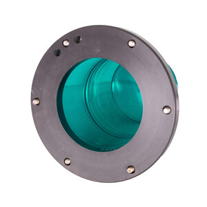 Omnibus lichtboei met groene en rode behuizing. Cilindervormig zwarte bus met witte tekst. Erboven rechthoekig gedeelte waarin draaiende fitting, waarin ruimte voor zes lampen. Er bijbehorende rode en groene cilindrisch tapse beschermkap op zwarte ring. Conditie: Hier en daar gebruikssporen, maar verder in goede staat. Lampen zijn niet aanwezig en snoer zit los, dus werking niet kunnen testen. Afmeting: 32,5 x ø 23,5 cm.