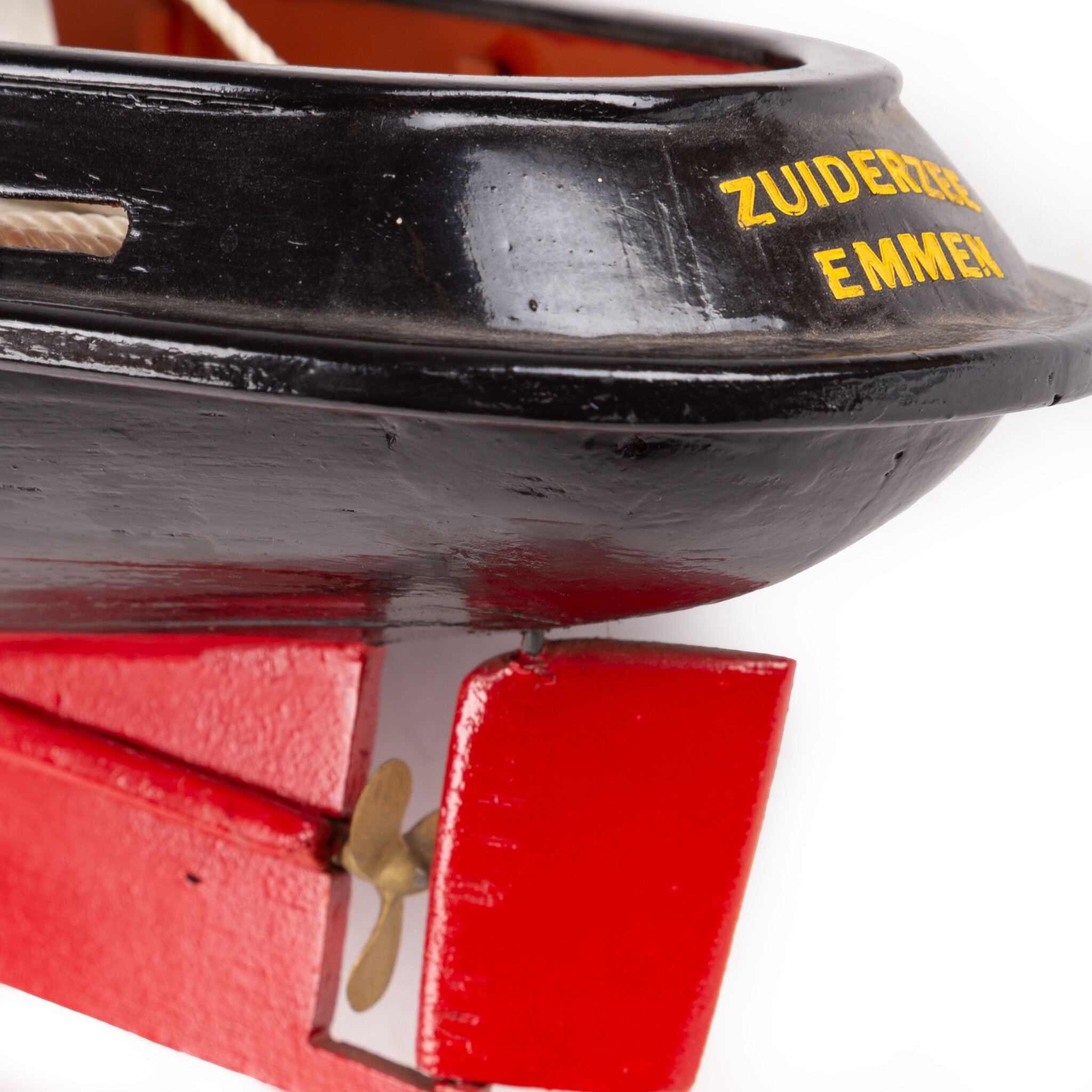 Een scheepsmodel van een sleepboot, in zwart en rood. Opschrift: "Zuiderzee Emmen". Op het dek twee stootbanden en een touw. Deze sleepboot is afkomstig van voormalig Scheepvaartmuseum te Gasselternijveen, 1988-2005. Datering: 20ste eeuw. Conditie: goed, met hier en daar gebruikssporen. Afmetingen: hoogte ca. 30.0 cm; breedte 61.0 cm; diepte ca. 15.0 cm.