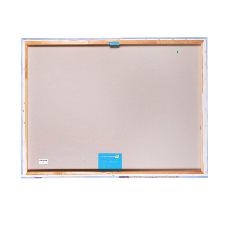 Kleurenfoto op linnen van een standbeeld van Janus wat op de boulevard van Noordwijk staat met daarachter de vuurtoren. De foto heeft gehangen in het gemeentehuis van Noordwijk. Conditie: lichte gebruikssporen aan de randen. Afmeting: 90 x 120 cm.