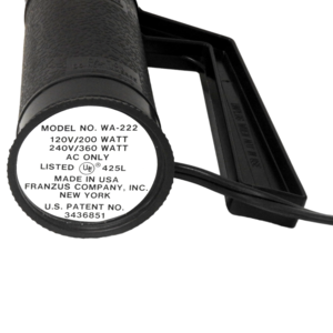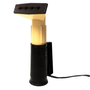 Stoomapparaatje, Amerikaanse makelij, Franzus Company. Datering onbekend. Stoomapparaatje, bedoeld om mee op reis te nemen om kleding uit de koffer kreukvrij te maken. Kan zowel op 110 als op 220 volt gebruikt worden. Conditie: vertoont ouderdomssporen. Afmetingen: hoogte 25 cm, breedte 15 cm, diepte 10 cm.