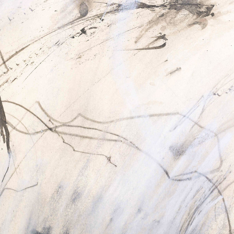 T. Hulshof - Schwarz, Aarde, 1989. Gemengde techniek op papier in metalen lijst. Abstracte compositie van zwarte lijnen en grijze vlakken.Rechtsonder signatuur en jaar.