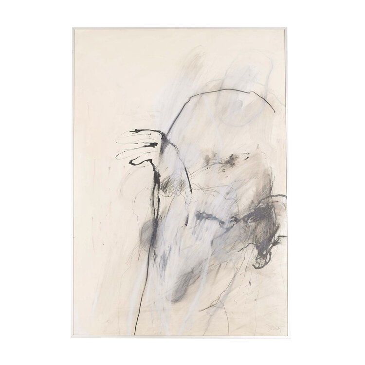 T. Hulshof - Schwarz, Aarde, 1989. Gemengde techniek op papier in metalen lijst. Abstracte compositie van zwarte lijnen en grijze vlakken.Rechtsonder signatuur en jaar. Conditie: gebruikssporen aan lijst. Afmeting lijst: 100 x 70 cm.