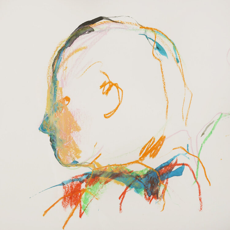 Tilleke Hulshof - Schwarz, Kinderen, 1988. Gemengde techniek op papier in metalen lijst. Kleurrijke lijntekening van twee kinderen. Signatuur en jaar rechtsonder. Conditie: gebruikssporen aan lijst, rechtsonder een barst in het glas. Afmeting lijst: 100 x 70 cm.