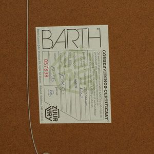 Toon Kuijpers, Field 8, gouache op papier, jaartal onbekend. Voorstelling met verschillende gekleurd objecten op een neutrale achtergrond. De voorstelling is omlijst met aan de bovenzijde een zwarte band met letters, en aan de onderzijde een witte band met cijfers. Conditie: Het werk is in goede staat, de lijst toont sporen van gebruik. Afmetingen werk zonder lijst: 50 x 70 cm; incl. lijst: 91,5 x 71 cm.