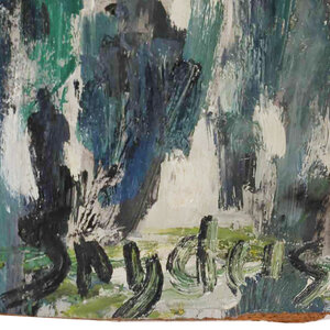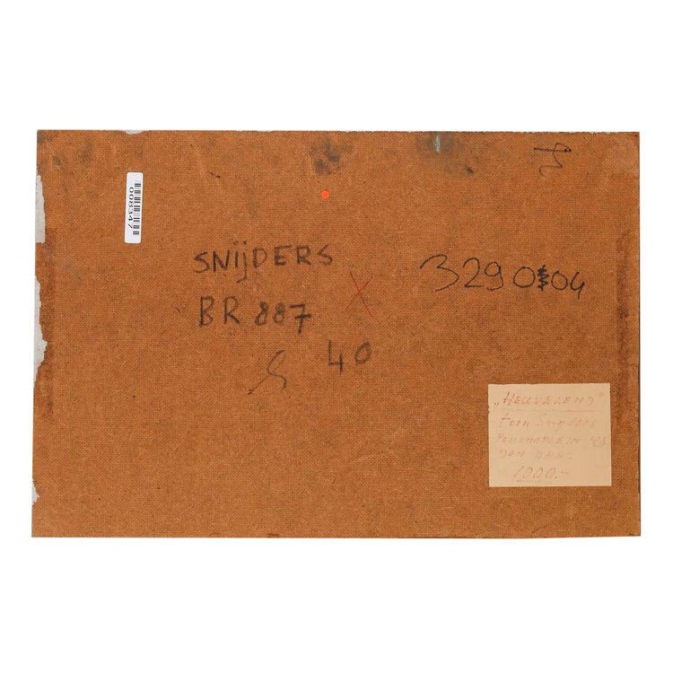 Toon Snijders, Heuvelland, jaartal onbekend. Olieverf op paneel. Heuvelachtig landschap met bomen in grove penseelstreken. Linksonder signatuur. Conditie: gebruikssporen aan de randen en hoeken. Afmeting:40 x 60 cm.