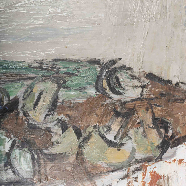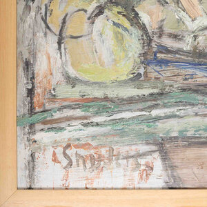 Toon Snijders, Stilleven, jaartal onbekend. Olieverf op paneel in houten lijst. Stilleven van een schaal met appels en champignons. Linksonder signatuur. Conditie: gebruikssporen op de lijst. Afmeting werk incl lijst: 45 x 63 cm.