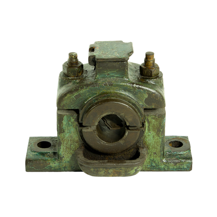 Set van twee groen geverfde koppelstukken, metalen machine onderdeel. Datering: onbekend. Conditie: prima. Afmetingen: koppelstuk 1 : ca. 22,0 x 29,5 x 17,0 cm. Koppelstuk 2: ca. 35,5 x 40,5 x 23,0 cm.