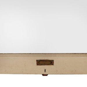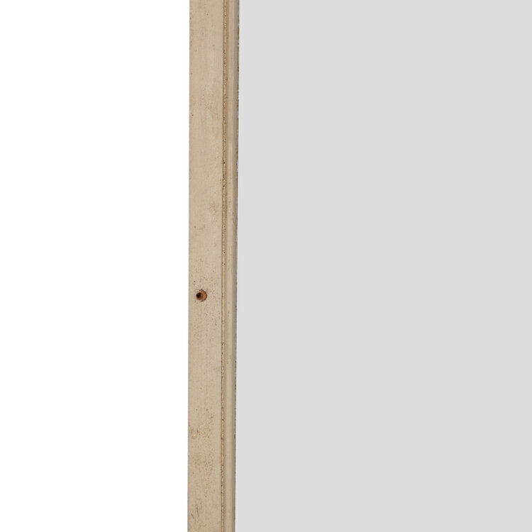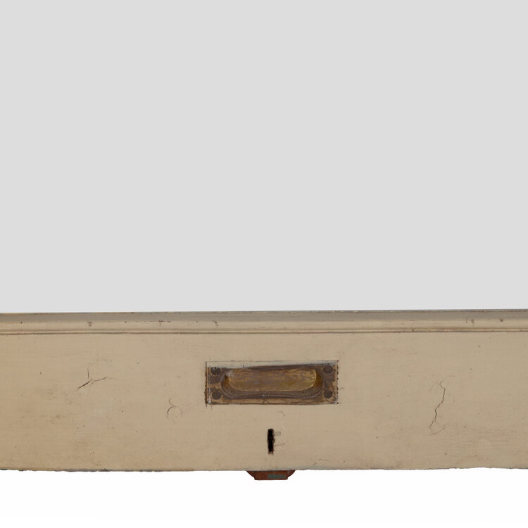Vitrinedeuren, eind 19e eeuw/begin 20ste eeuw. Twee crèmekleurige houten vitrinedeuren met authentieke glaspanelen. De deuren hebben een golvende bovenrand en aan de onderkant een metalen handgreep en sleutelgat. De vitrinedeuren hebben vroeger in het Fries museum gezeten. Conditie: De deuren vertonen sporen van gebruik en ouderdom. De vitrinedeuren zijn vies en de verf is hier en daar afgebladderd. De ruiten in de houten deuren zitten een beetje los. Afmetingen deur: ca. 199 x 68 x 3 cm.