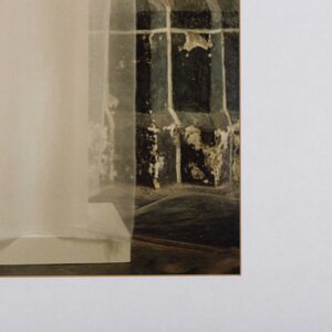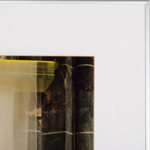 Ulrike C. Schnaubert, 'Foto Altaar', datering onbekend. Foto met passe-partout in metalen lijst met kunststof plaat. Foto beelden over elkaar van een marmeren zuil en een altaar in groentinten. Signatuur ontbreekt. Conditie: vertoont gebruikssporen. Afmetingen incl lijst: ca 81 x 61 cm.