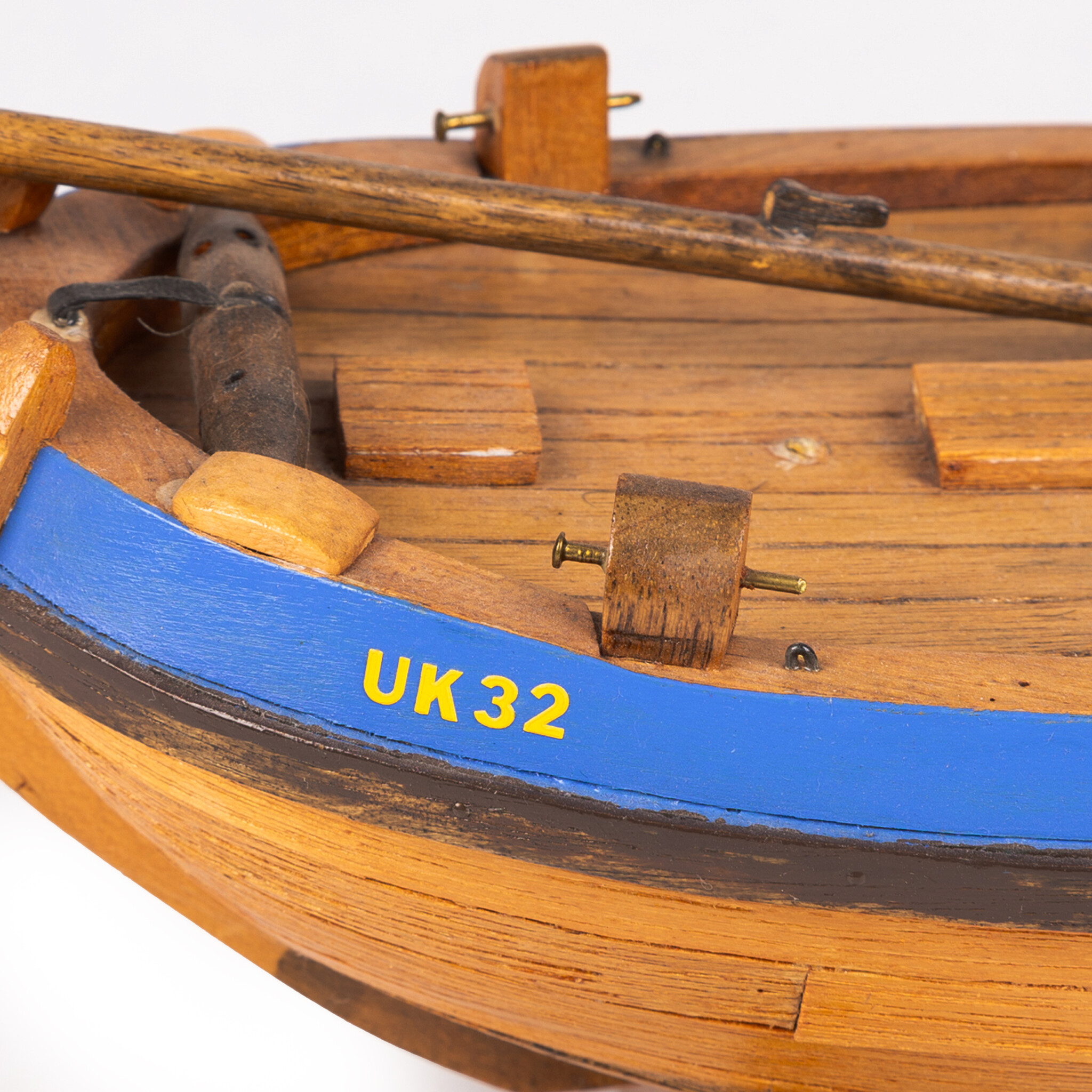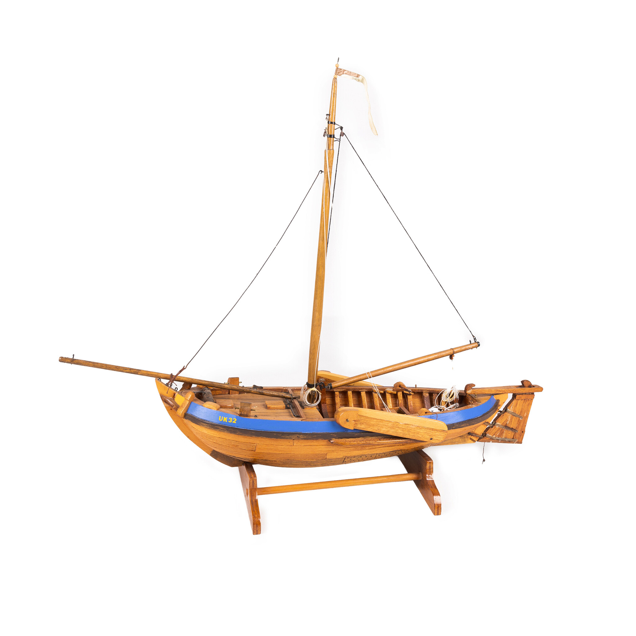 Een scheepsmodel van een Urkerbotter. Een eenmaster zonder zeilen met zijzwaarden, kiel en een blauwe rand boven de stootrand. Opschrift: "UK32". De Urkerbotter rust op een houten standaard. Deze botter is afkomstig van voormalig Scheepvaartmuseum te Gasselternijveen, 1988-2005. Datering: 20ste eeuw. Conditie: goed, met hier en daar gebruikssporen. Afmetingen: breedte ca. 60.0 cm; hoogte ca. 50.0 cm; diepte ca. 20.0 cm.