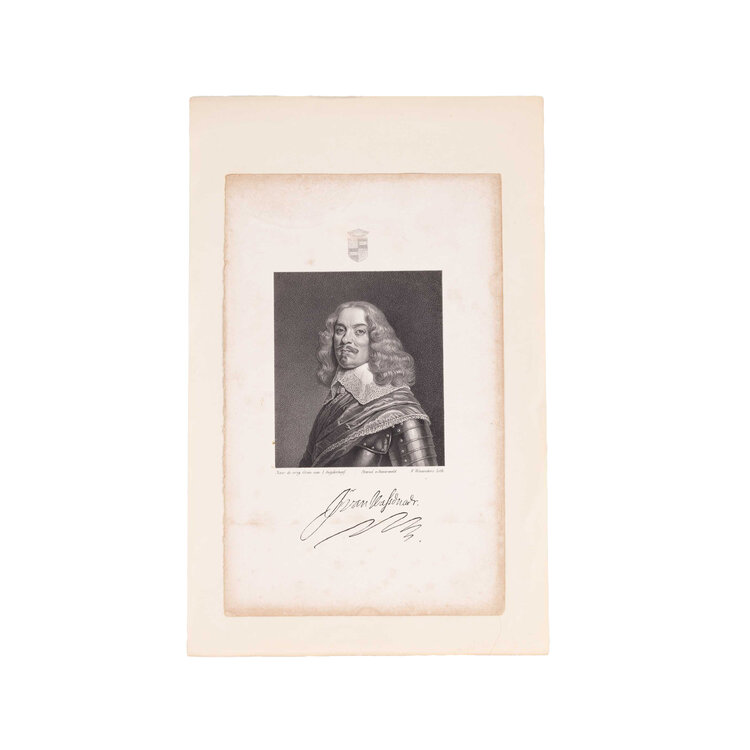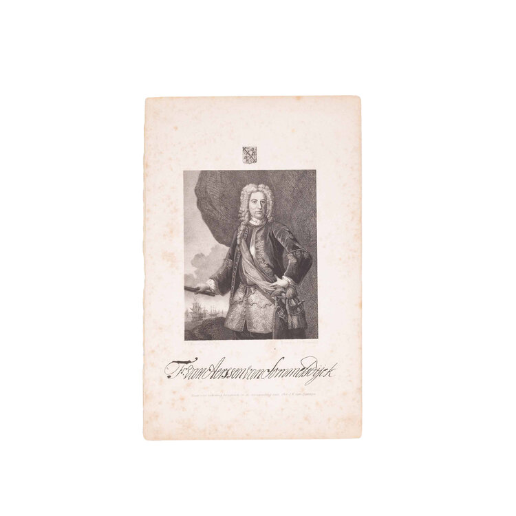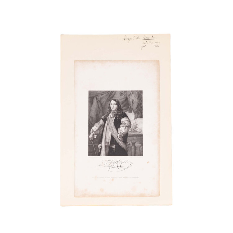 Prent 'Isaac Sweers' (Nijmegen, 1 januari 1622 - 21 augustus 1673); Prent 'Jacob baron van Wassenaer Obdam (1610 - 1665); Prent 'François van Aerssen van Sommelsdijck' (Parijs, 24 juni 1669 - Den Haag, 19 juli 1740); Prent 'Engel de Ruyter' (Vlissingen, 2 mei 1649 - 27 februari 1683), zoon van Michiel de Ruyter. Steendrukken van F.H. Weissenbruch en J.D. Steuerwald met middenboven het wapenschild. De prenten zijn zwart-wit, onder het portret staat een handtekening. Datering: ca. 1850. Conditie: De prenten vertonen sporen van ouderdom. Verkleuring, vlekken en kleine beschadigingen aan de randen. De prenten zijn geplakt op een vel. Afmetingen beeldvlak prenten: ca. 12 x 10 cm.
