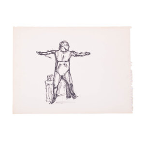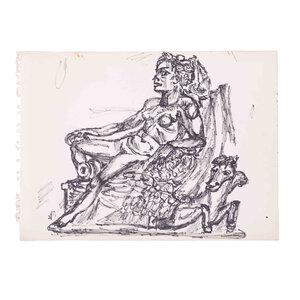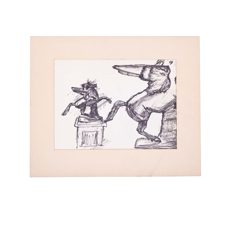 Vier schetsen van sculpturen op met viltstift waarvan één in passepartout. Schetsen met zwarte viltstift op papier, de beelden zijn waarschijnlijk geschetst in Italië, zoals het pegasusbeeld van Aristodemo Costoli in Giardino di Boboli. Conditie: De tekeningen zijn in prima conditie maar tonen sporen van ouderdom en gebruik. Afmetingen: schets papier: 27 x 37 cm. passepartout: 42 x 36 cm