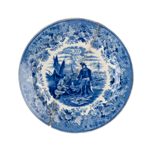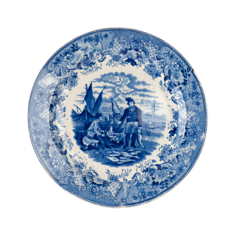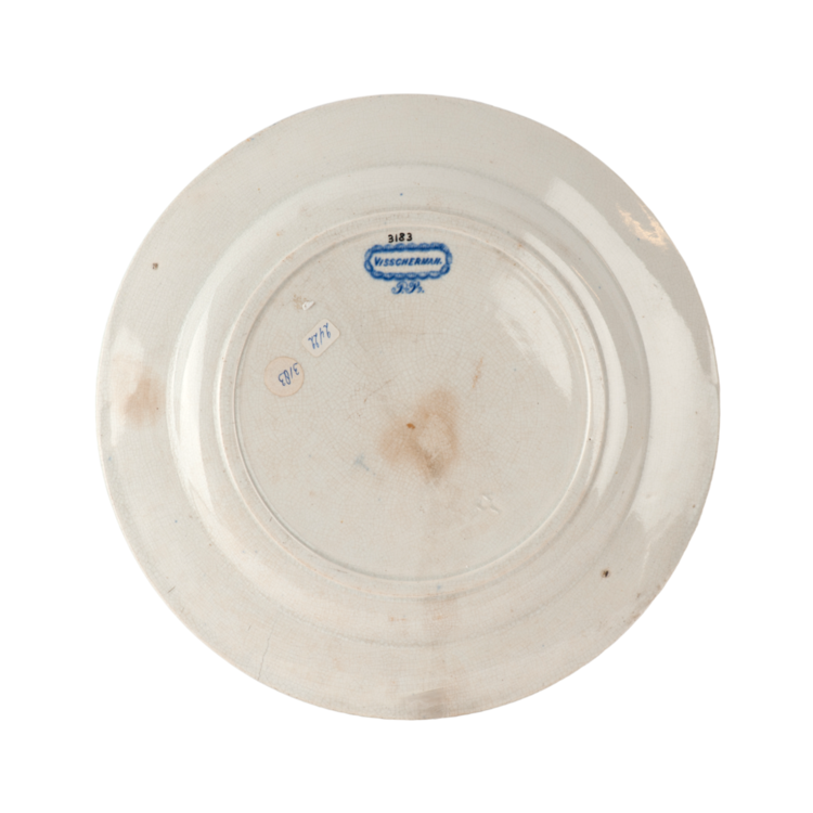 Set van vijf aardewerken wandborden met voorstelling 'De Visscherman'. Het decor is geproduceerd door de Maastrichtse aardewerkfabriek Petrus Regout. Datering: ca.1865. Conditie: goed met gebruikssporen, een wandbord is gerepareerd. Afmetingen: diameter 21.2 cm.